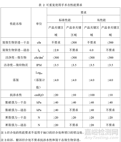 手術(shù)衣非關(guān)鍵區(qū)域包括非關(guān)鍵區(qū)域內(nèi)部結(jié)合處(若有)應(yīng)符合表 2規(guī)定的非關(guān)鍵區(qū)域的要求。