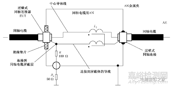 對于屏蔽電纜,目前有兩種類型的ISN,如圖8的同軸電纜ISN,和圖9所示的多芯屏蔽電纜ISN。