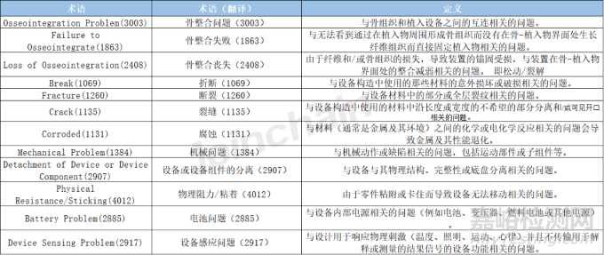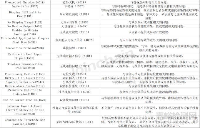 附表1 美國不良事件設備問題術(shù)語定義