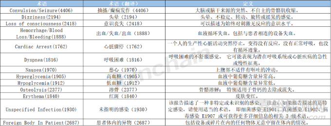 附表2 美國不良事件患者問題術(shù)語定義