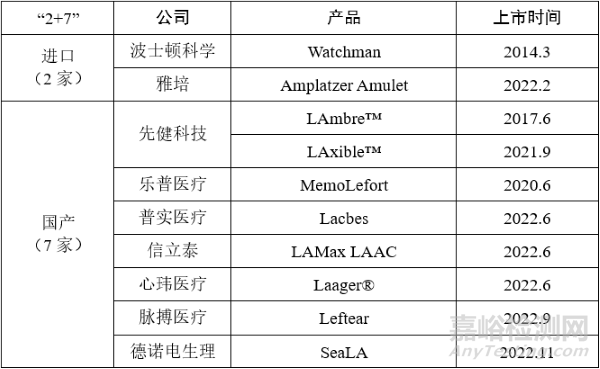 表5 左心耳封堵器產(chǎn)品國內(nèi)上市情況