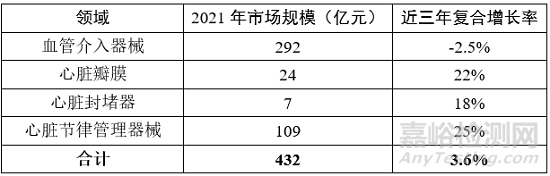 表1 心血管介入器械市場規(guī)模情況