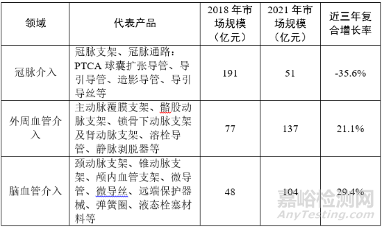 表2 血管介入器械細(xì)分領(lǐng)域產(chǎn)品及市場情況