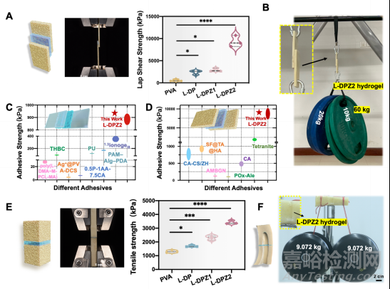 圖2 超強(qiáng)骨膠的粘接強(qiáng)度表征及比較。