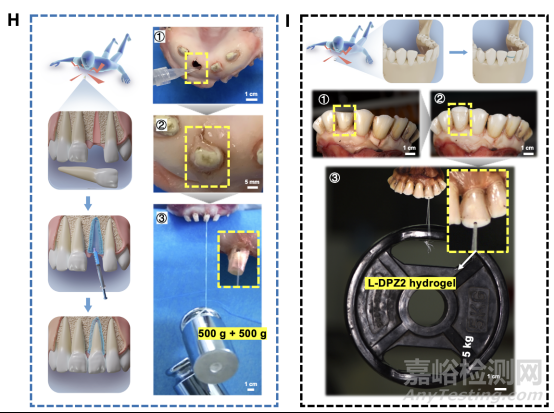 牙齒是人體最堅(jiān)硬的組織,與骨骼類似,它們非常容易因外傷斷裂或脫落,尤其是身體協(xié)調(diào)性差、活潑好動(dòng)的低齡兒童[8]。而脫位牙再植是非常困難的,給臨床帶來了很多挑戰(zhàn)。得益于超強(qiáng)的粘附強(qiáng)度,該超級(jí)骨膠成功實(shí)現(xiàn)了體外脫位牙齒的再植以及牙碎片的拼接復(fù)位(詳見圖3)。