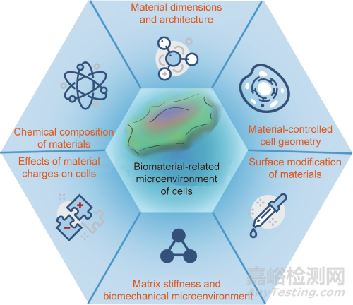 圖1. 與材料相關(guān)的細胞微環(huán)境的關(guān)鍵因素。