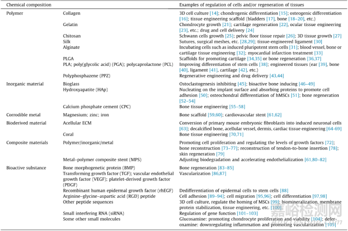 表1 用于組織工程和再生醫(yī)學的生物材料的化學成分