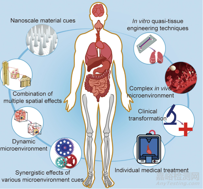 圖9. 組織工程與細胞微環(huán)境需要關(guān)注的研究方向。