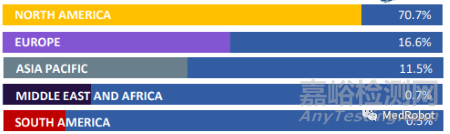 ▲全球手術機器人主要區(qū)域收入貢獻占比