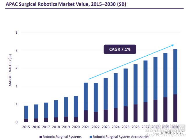 ▲亞太地區(qū)手術機器人市場價值,2015-2030(單位:十億美元)