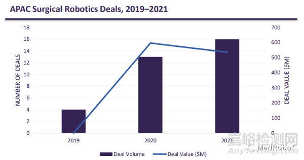 ▲2019-2021年亞太地區(qū)外科手術機器人交易情況