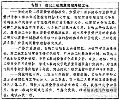 ?。ㄊ?qiáng)化工程質(zhì)量保障。全面落實(shí)各方主體的工程質(zhì)量責(zé)任,強(qiáng)化建設(shè)單位工程質(zhì)量首要責(zé)任和勘察、設(shè)計(jì)、施工、監(jiān)理單位主體責(zé)任。嚴(yán)格執(zhí)行工程質(zhì)量終身責(zé)任書面承諾制、永久性標(biāo)牌制、質(zhì)量信息檔案等制度,強(qiáng)化質(zhì)量責(zé)任追溯追究。落實(shí)建設(shè)項(xiàng)目法人責(zé)任制,保證合理工期、造價(jià)和質(zhì)量。推進(jìn)工程質(zhì)量管理標(biāo)準(zhǔn)化,實(shí)施工程施工崗位責(zé)任制,嚴(yán)格進(jìn)場(chǎng)設(shè)備和材料、施工工序、項(xiàng)目驗(yàn)收的全過程質(zhì)量管控。完善建設(shè)工程質(zhì)量保修制度,加強(qiáng)運(yùn)營維護(hù)管理。強(qiáng)化工程建設(shè)全鏈條質(zhì)量監(jiān)管,完善日常檢查和抽查抽測(cè)相結(jié)合的質(zhì)量監(jiān)督檢查制度,加強(qiáng)工程質(zhì)量監(jiān)督隊(duì)伍建設(shè),探索推行政府購買服務(wù)方式委托社會(huì)力量輔助工程質(zhì)量監(jiān)督檢查。完善工程建設(shè)招標(biāo)投標(biāo)制度,將企業(yè)工程質(zhì)量情況納入招標(biāo)投標(biāo)評(píng)審,加強(qiáng)標(biāo)后合同履約監(jiān)管。