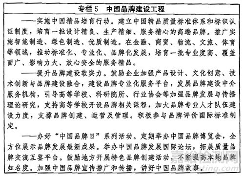 ?。ǘ唬?zhēng)創(chuàng)國內(nèi)國際知名品牌。完善品牌培育發(fā)展機(jī)制,開展中國品牌創(chuàng)建行動(dòng),打造中國精品和“百年老店”。鼓勵(lì)企業(yè)實(shí)施質(zhì)量品牌戰(zhàn)略,建立品牌培育管理體系,深化品牌設(shè)計(jì)、市場(chǎng)推廣、品牌維護(hù)等能力建設(shè),提高品牌全生命周期管理運(yùn)營能力。開展品牌理論、價(jià)值評(píng)價(jià)研究,完善品牌價(jià)值評(píng)價(jià)標(biāo)準(zhǔn),推動(dòng)品牌價(jià)值評(píng)價(jià)和結(jié)果應(yīng)用。統(tǒng)籌開展中華老字號(hào)和地方老字號(hào)認(rèn)定,完善老字號(hào)名錄體系。持續(xù)辦好“中國品牌日”系列活動(dòng)。支持企業(yè)加強(qiáng)品牌保護(hù)和維權(quán),依法嚴(yán)厲打擊品牌仿冒、商標(biāo)侵權(quán)等違法行為,為優(yōu)質(zhì)品牌企業(yè)發(fā)展創(chuàng)造良好環(huán)境。