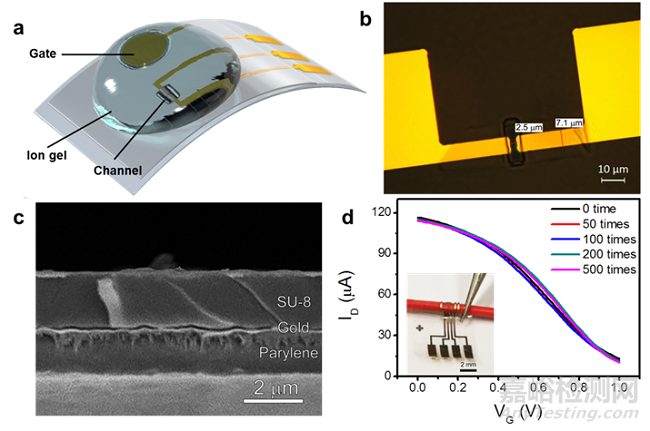 圖一,超薄柔性有機電化學(xué)晶體管制備和表征。