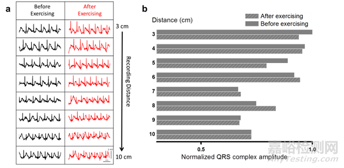 柔性O(shè)ECT陣列用于可穿戴心電信號測繪時,該陣列能夠和皮膚完美貼合,并通過單根信號線纜連接至外部信號獲取設(shè)備,所獲得的信號具有典型的心電信號特征,在陣列不同位置記錄的心電信號具有不同的信號特征,該特征區(qū)別于傳統(tǒng)12導(dǎo)聯(lián)心電監(jiān)護儀所獲得信號,并有望用于體育訓(xùn)練指導(dǎo)及心血管疾病診斷。
