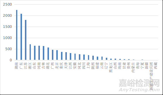 從首次注冊(cè)情況看,湖南、廣東、江蘇、浙江、山東、河南、吉林、浙江、湖北、廣西10?。ㄖ陛犑校┦状巫?cè)的境內(nèi)第二類(lèi)醫(yī)療器械數(shù)量較多。各省第二類(lèi)醫(yī)療器械首次注冊(cè)數(shù)量排序圖見(jiàn)圖19。
