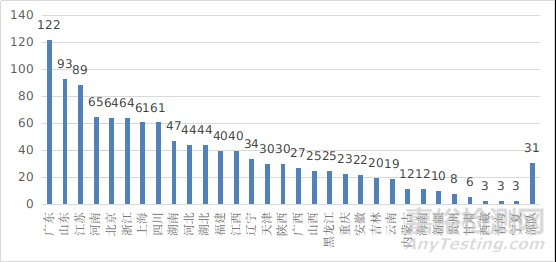 其中廣東、山東、江蘇、河南、北京和浙江臨床試驗(yàn)機(jī)構(gòu)備案數(shù)量居全國(guó)前五名。全國(guó)醫(yī)療器械臨床試驗(yàn)機(jī)構(gòu)分布情況見(jiàn)圖20。