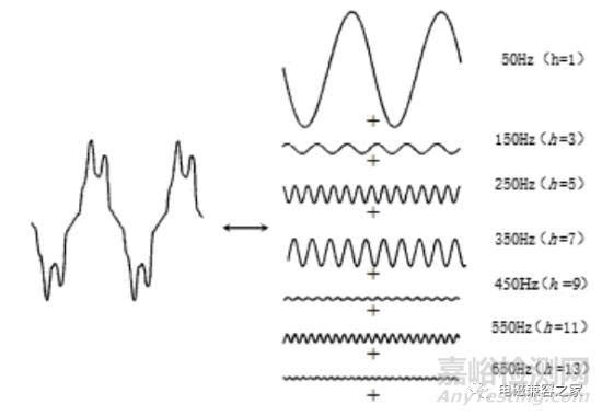 通常情況下,諧波的頻率為50Hz的整倍數(shù),諧波用基波的倍數(shù)表示。例如頻率為150Hz的正弦波稱為3次諧波,頻率為250Hz的正弦波稱為5次諧波,頻率為350Hz的正弦波稱為7次諧波,以此類推。