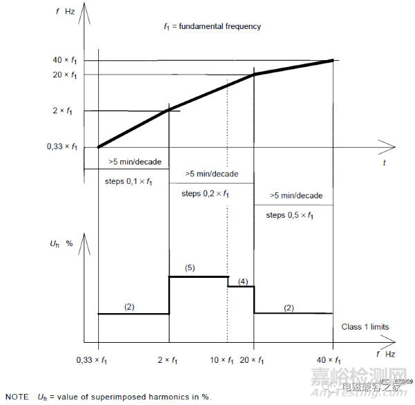大于或等于3%等級的諧波電壓(直到9次諧波)時,在基波0和180相位應(yīng)分別施加試驗等級,小于3%的試驗等級的諧波電壓沒有相位要求。