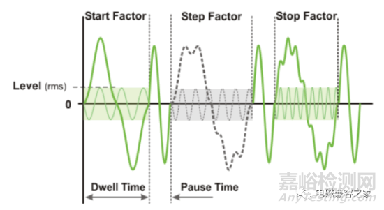 諧間波試驗每頻率步長施加時間(Dwell Time)為5s,間隔(Pause Time)1s再施加下一個頻率。