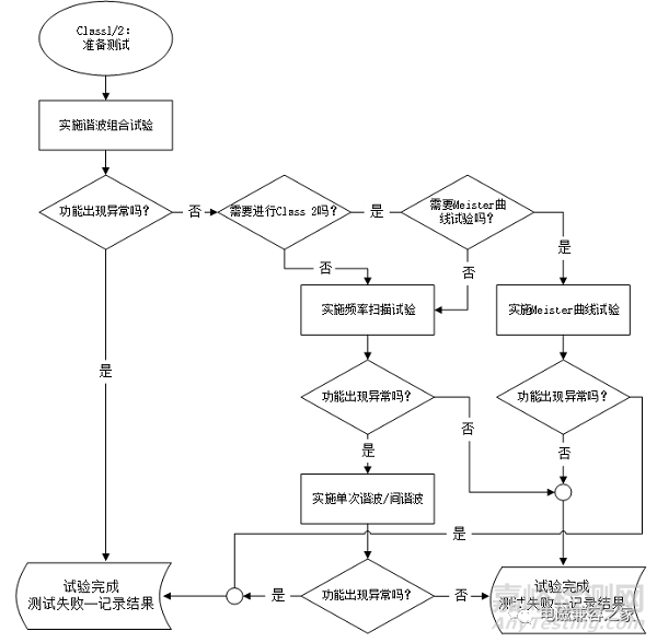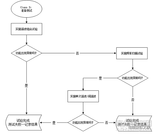 為了簡化試驗,依照試驗等級,諧波、諧間波及電網(wǎng)信號抗擾度測試可分為兩個試驗流程圖:Class 1/Class 2試驗流程圖、Class 3試驗流程圖。