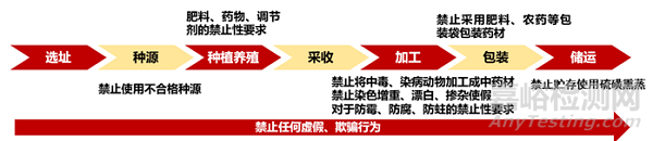 | 包裝材料及包裝方法要求 | 包括采收、加工、貯存各階段的包裝材料要求及包裝方法。 |