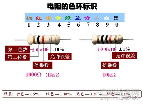 小口訣:棕一紅二橙是三,四黃五綠六為藍(lán),七紫八灰九對(duì)白,黑是零,金五銀十表誤差。