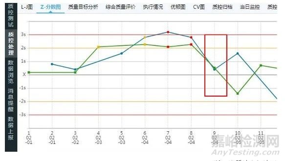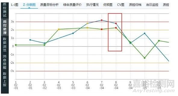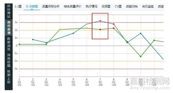 2021年2月4日,再一次進(jìn)行質(zhì)控發(fā)現(xiàn)AST 2 2S失控,結(jié)果如圖2所示。