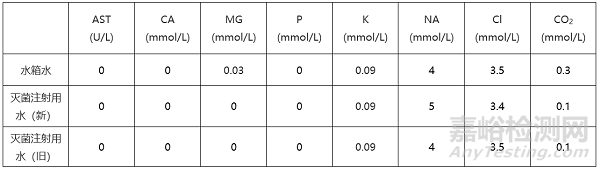 針對這兩個方面,我們做了以下實驗。首先分別檢測新舊滅菌注射用水及水箱水中的鉀鈉氯鈣鎂磷TCO2及AST,發(fā)現(xiàn)三者各個項目并無差異。說明物質(zhì)干擾或電導(dǎo)率影響的可能性較小。