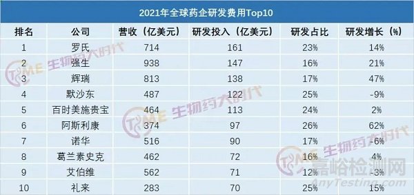羅氏2022年在研發(fā)上花費(fèi)176.75億美元,再登榜首。相比于2021年,研發(fā)費(fèi)用提高了10%。近年來,羅氏在研發(fā)方面的投入一直位居全球首位,研發(fā)費(fèi)用占據(jù)總營收的25%,研發(fā)投入力度之大,由此可見。
