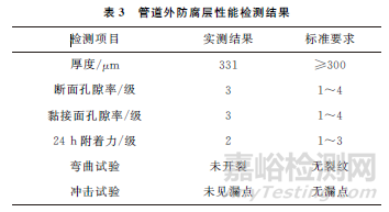 依據(jù)SY/T 0315—2013 《鋼質(zhì)管道熔結(jié)環(huán)氧粉末外涂層技術(shù)規(guī)范》,選取遠(yuǎn)離開裂部位外防腐層進(jìn)行檢測,結(jié)果如表3所示。由表3可知:管道外防腐層性能檢測結(jié)果符合SY/T 0315—2013的要求。