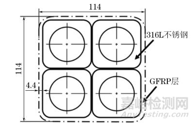 絕緣層試塊內(nèi)部為316L不銹鋼,外部包覆厚度為4.4 mm的GFRP層,試塊尺寸為長(zhǎng)400 mm,寬114 mm,厚114 mm,絕緣層試塊包繞結(jié)構(gòu)如圖3所示。