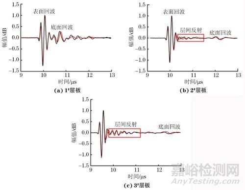 圖5 3種厚度GFRP層板缺陷附近的典型A掃描信號(hào)