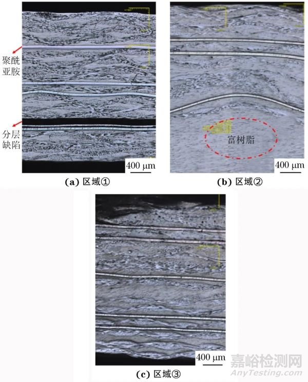 圖10 絕緣層試塊不同區(qū)域的金相照片