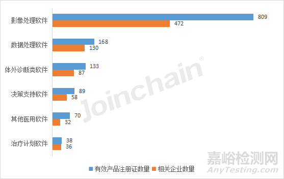 圖表3 2022年醫(yī)用軟件下屬一級(jí)有效產(chǎn)品/企業(yè)數(shù)量排行