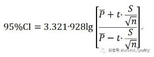 置信區(qū)間 =3.321928*LOG10((F2+(2.447*I2/POWER(7,0.5)))/(F2-2.447*I2/POWER(7,0.5)))