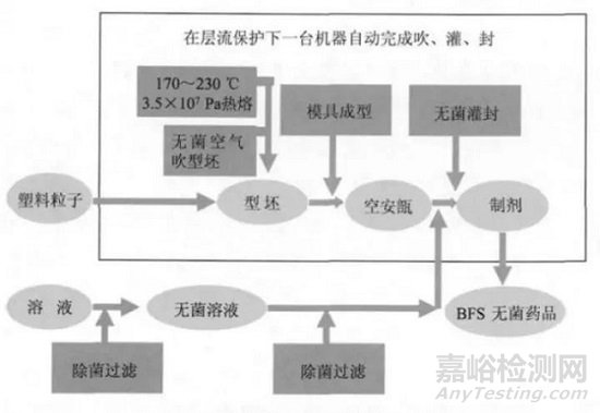 BFS無菌灌裝工藝流程如圖1所示,其優(yōu)勢(shì)有: