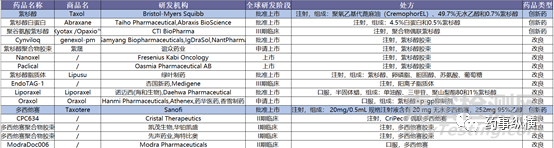 已上市及在研紫杉烷類藥物