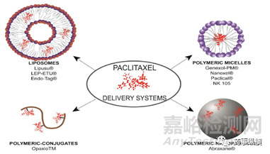 紫杉醇(PTX)是紫杉烷家族的一員,是治療許多腫瘤常用化療藥物之一。紫杉醇對多種癌癥均具有抗腫瘤活性,包括乳腺癌、卵巢癌、肝癌、非小細胞肺癌、頭頸部腫瘤、泌尿系統(tǒng)惡性腫瘤等。最初普通紫杉醇注射劑紫杉醇(商品名Taxol ®),為增溶加入輔料聚氧乙烯蓖麻油,聚氧乙烯蓖麻油低濃度用于其他藥物處方中,如異丙酚、環(huán)孢霉素A和安定中,但紫杉醇制劑中所用蓖麻油的用量是這些藥物用量的5倍多,這會帶來嚴(yán)重過敏反應(yīng)。因此,所有接受Taxol®的患者必須預(yù)先用皮質(zhì)激素,H2拮抗劑和抗組胺預(yù)防可能產(chǎn)生的致命過敏反應(yīng)。同時聚氧乙烯蓖麻油直接影響肺和血管內(nèi)皮細胞,引起呼吸困難和血管舒張。普通紫杉醇制劑藥代動力學(xué)變異性較大,且較短輸液時間(<3h)會導(dǎo)致非線性藥代動力學(xué)發(fā)生,而且紫杉醇可能被困在血漿聚氧乙烯蓖麻油膠束的疏水內(nèi)部,從而使其難以分布到腫瘤內(nèi)部,這些都是普通紫杉醇注射劑的缺點。