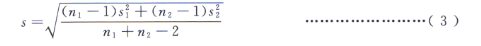 其中,兩組等精度測(cè)定結(jié)果的合并實(shí)驗(yàn)標(biāo)準(zhǔn)偏差s按式(3)計(jì)算: