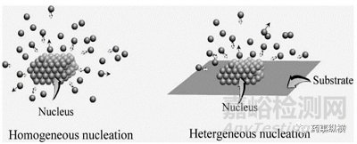 圖1 均質(zhì)成核與異質(zhì)成核示意圖