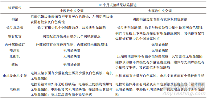 表6 中央空調(diào)外機(jī)12個(gè)月試驗(yàn)結(jié)果