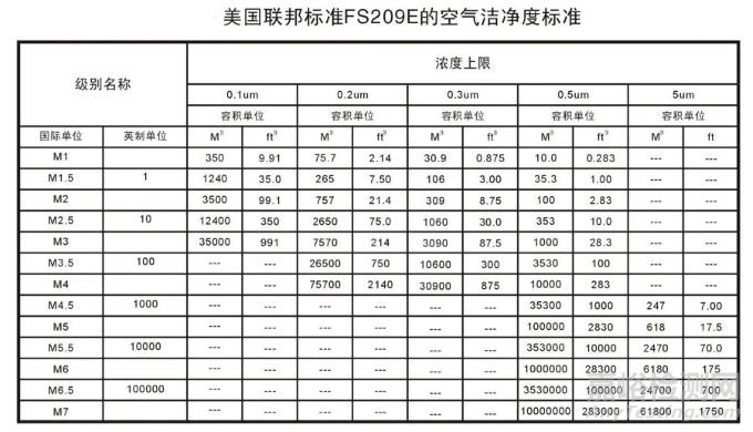 潔凈區(qū)(室)的分級概念首先由美國提出,1963年推出了潔凈室第一個(gè)軍用部分的聯(lián)邦標(biāo)準(zhǔn):FS-209。我們熟悉的百級、萬級、十萬級都是源自此標(biāo)準(zhǔn),2001年美國停止使用FS-209E標(biāo)準(zhǔn),開始使用ISO標(biāo)準(zhǔn)。