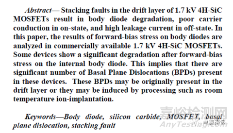 本篇文章來自于美國Ohio州立大學電氣及計算機工程系,對理解SiC mosfet的體二極管的可靠性機理有很大幫助。