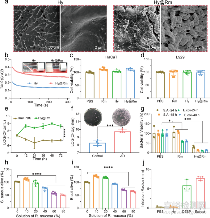 圖2:Hy@Rm的性能表征及其抗菌性能的研究