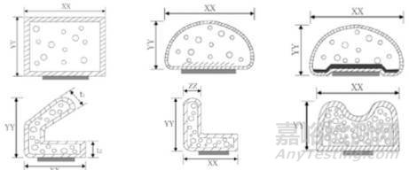 此款材料可按照需求成型為片狀、模壓狀、擠出成型及薄膜狀。標(biāo)準(zhǔn)形狀有:實(shí)體O形條、空心O形條、實(shí)體D形條、空心D形條、U形條、矩形條、中空矩形條、中空P形條、通道條以及模制導(dǎo)電橡膠成形件、模制的D-形圈/O-形圈、各種法蘭、I/O襯墊。