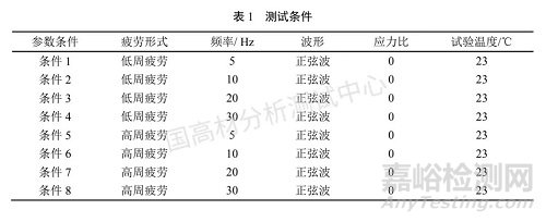 由表2和表3可知,頻率對(duì)低周疲勞的影響要明顯高于對(duì)高周疲勞的影響,頻率的差異對(duì)低周疲勞的 疲勞壽命影響還保留在一個(gè)數(shù)量級(jí)上,而對(duì)于高周疲勞的疲勞壽命的影響已經(jīng)不是在一個(gè)數(shù)量級(jí)上的了。筆者認(rèn)為這是由于高周疲勞的應(yīng)力較大,導(dǎo)致材料很短時(shí)間就失效,試驗(yàn)過程中產(chǎn)生的熱能由于試驗(yàn)時(shí)間短來不及傳遞;而低周疲勞由于應(yīng)力比較小,材料失效的時(shí)間相對(duì)會(huì)長(zhǎng)一些,試驗(yàn)過程中產(chǎn)生的熱能由于試驗(yàn)時(shí)間長(zhǎng)可以通過熱傳遞與環(huán)境溫度來達(dá)到熱平衡。