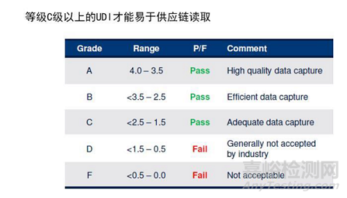 印制(打?。l碼符號(hào)。為確保條碼符號(hào)的印刷(打?。┵|(zhì)量、數(shù)據(jù)載體應(yīng)用符合性和數(shù)據(jù)結(jié)構(gòu)是否符合發(fā)碼機(jī)構(gòu)對(duì)應(yīng)的規(guī)則,建議在批量印刷(打?。┲?,先印制(打?。┌b小樣到具有檢測(cè)能力的機(jī)構(gòu)進(jìn)行檢測(cè),符號(hào)質(zhì)量、數(shù)據(jù)載體應(yīng)用符合性和數(shù)據(jù)結(jié)構(gòu)符合發(fā)碼機(jī)構(gòu)對(duì)應(yīng)的規(guī)則再進(jìn)行大批量印刷,從而達(dá)到控制條碼質(zhì)量的目的。見下圖可接受符號(hào)等級(jí)標(biāo)準(zhǔn)≧1.5,可參考GB/T 18348-2022 《商品條碼 條碼符號(hào)印制質(zhì)量的檢驗(yàn)》和GB/T 23704-2017 《二維條碼符號(hào)印制質(zhì)量的檢驗(yàn)》等。