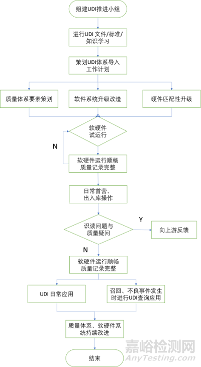 企業(yè)應(yīng)在已有的制度和體系文件的基礎(chǔ)上,將UDI實(shí)施需要變更與完善的內(nèi)容更新到制度與文件中,特別是實(shí)施具體操作的重點(diǎn)環(huán)節(jié),需要編制明確的作業(yè)指導(dǎo)文件??删幹茖?shí)施流程圖,參考附錄1。