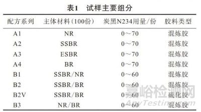 將不同用量炭黑N234與橡膠制成混煉膠和硫化膠試樣系列(如表1所示)。